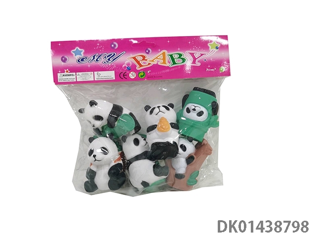 室内嬉水洗澡沐浴捏捏叫搪胶动物混装竹抱平安熊猫六只六款