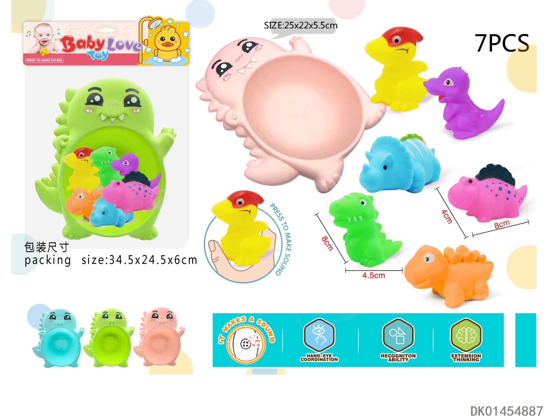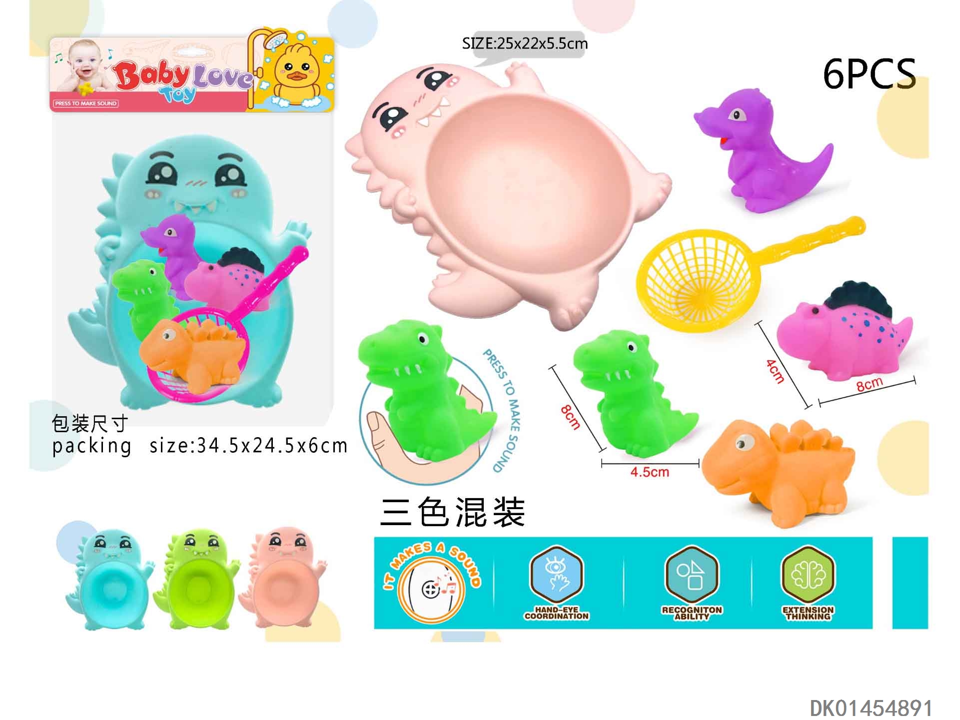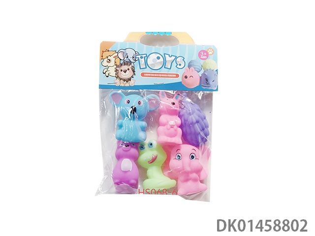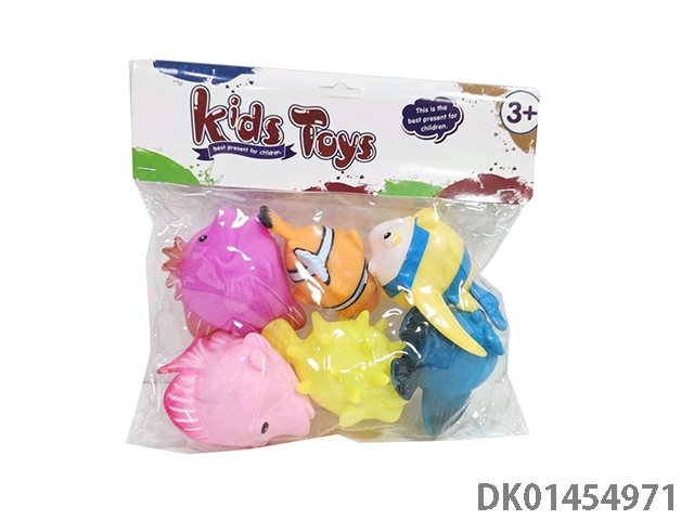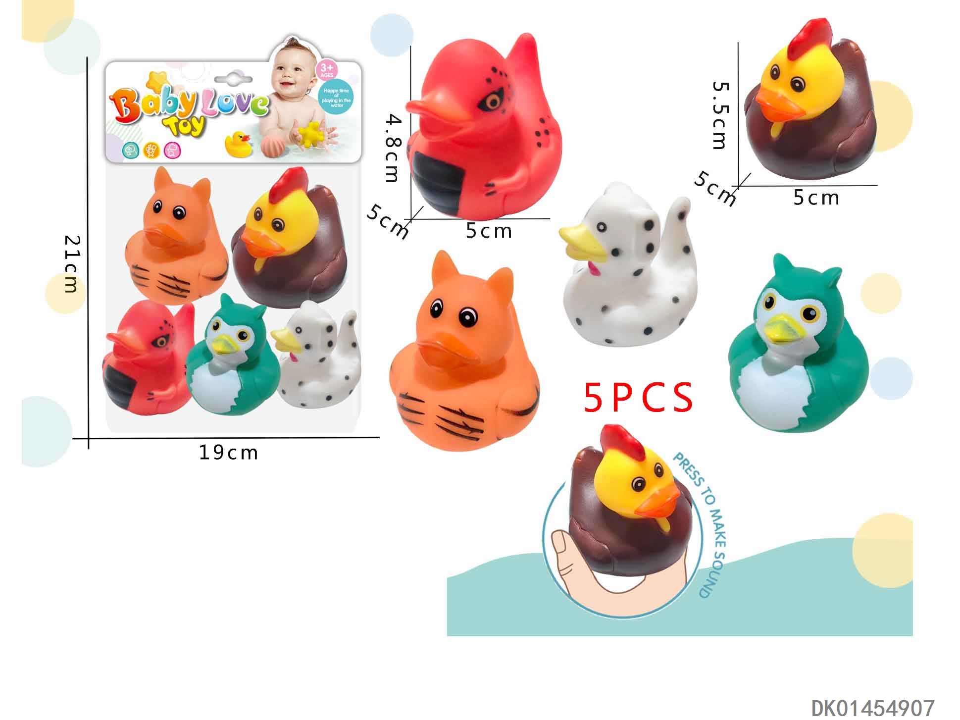 5只搪胶鸭子动物浴室玩具 搪胶BB哨响声玩具