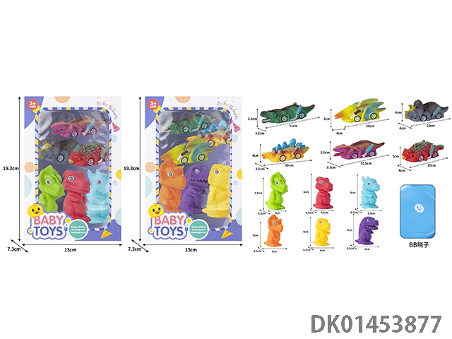 搪胶新款搪胶益智卡通恐龙 多色彩恐龙车 BB哨 发声 软胶 戏水玩具 捏捏乐
