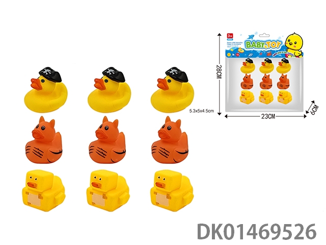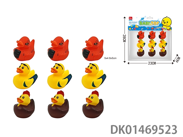 搪胶软胶戏水鸭子不同形状玩具9只袋装
