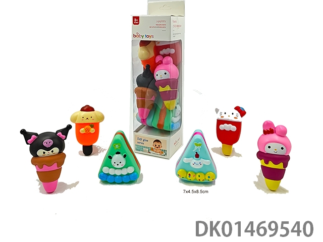 搪胶软胶戏水冰淇淋雪糕玩具6只盒装