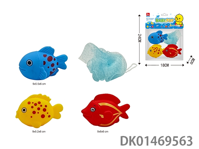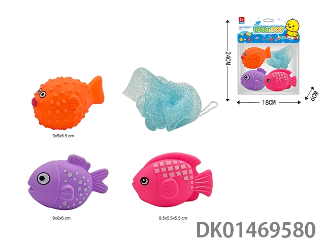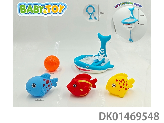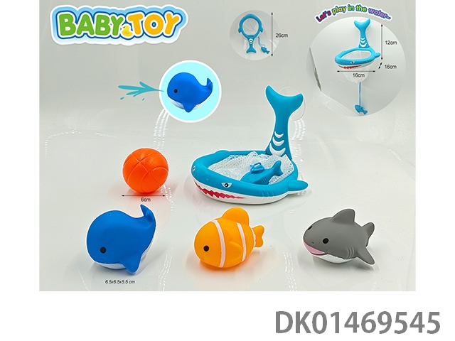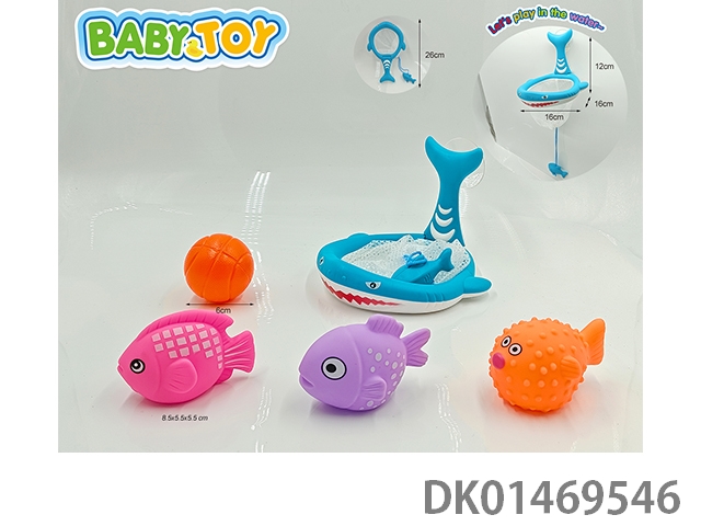 喷水搪胶软胶戏水玩具海洋鲨鱼鱼捞套装