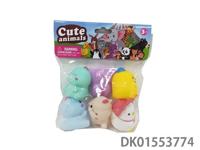 室内嬉水捏捏叫搪胶动物混装六只六款混装(两款混装)PVC卡头超透袋
