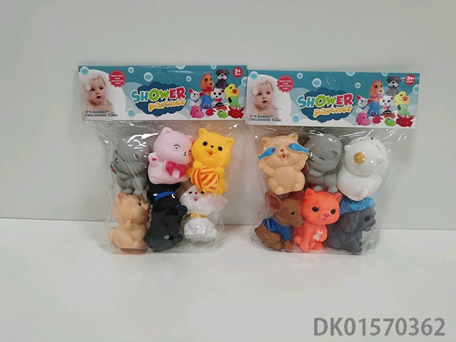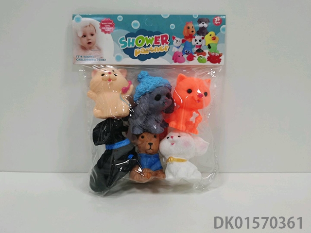 室内嬉水捏捏叫搪胶小动物六只六款狗多款混装PVC卡头超透袋