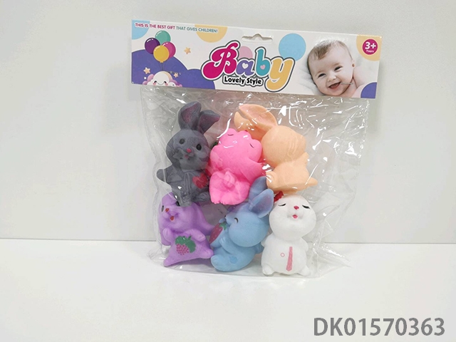 室内嬉水捏捏叫搪胶动物可爱小兔子混装六只六款PVC卡头超透袋