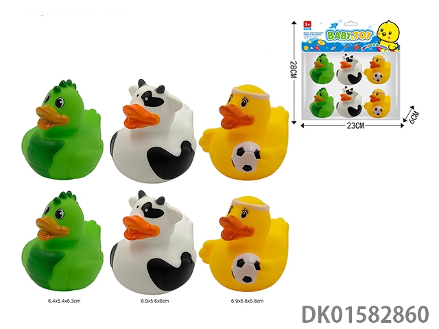 搪胶动物戏水玩具小绿鸭,奶牛小白鸭,足球小黄鸭3只盒装