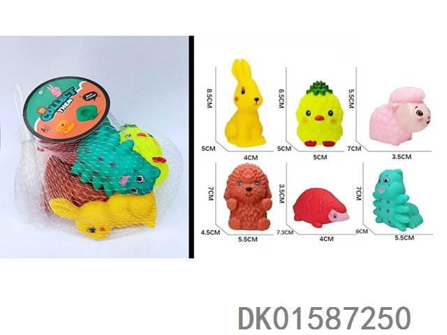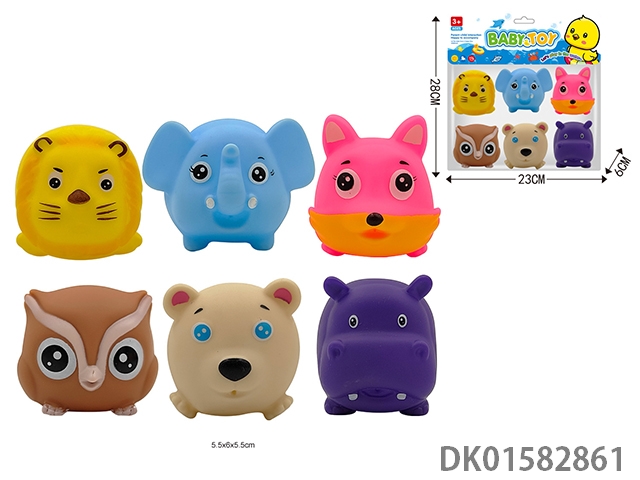 熊、狐狸、大象、猫头鹰、河马、狮子3只盒装戏水玩具捏捏响搪胶动物