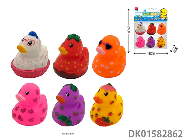 戏水玩具捏捏响搪胶动物6只小鸭子袋装