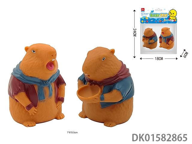 戏水玩具捏捏响搪胶动物卡皮巴拉3只袋装