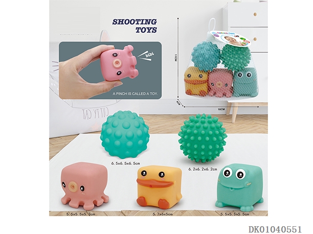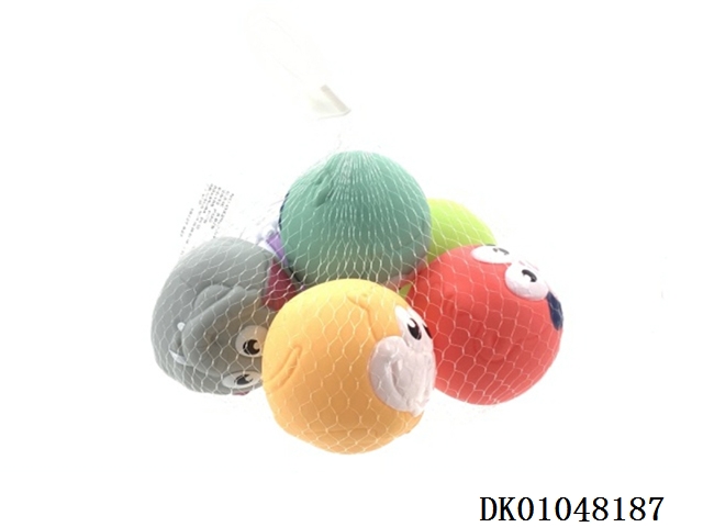 6款动物造型喷油搪胶球(自动哨子)网袋