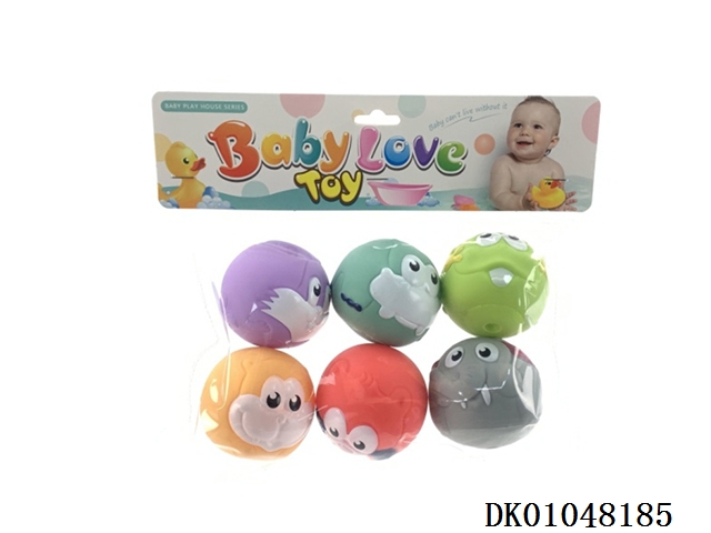 6款动物造型喷油搪胶球(自动哨子)卡头袋