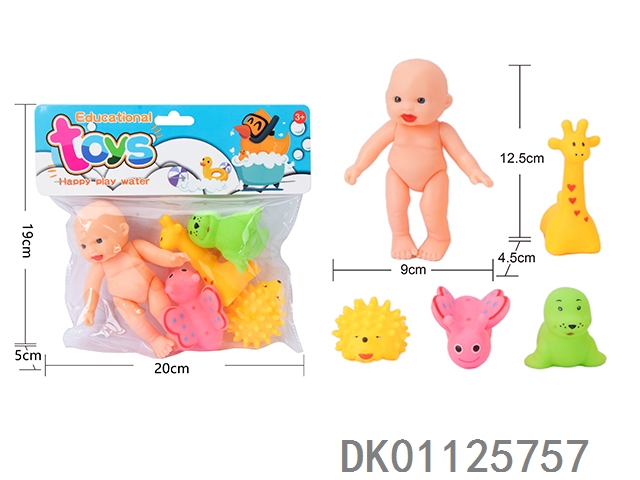 搪胶玩具 捏捏叫 儿童沐浴 沙滩戏水 表情娃+四款小动物