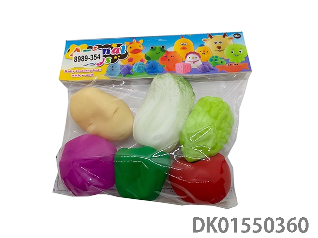 (俄文)环保搪胶蔬菜食物BB哨玩具6PCS