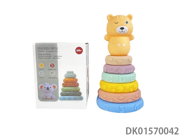 搪胶软胶叠叠乐玩具可啃咬积木益智早教玩具6只加动物装盒装搪胶动物叠叠乐叠叠圈搪胶玩具
