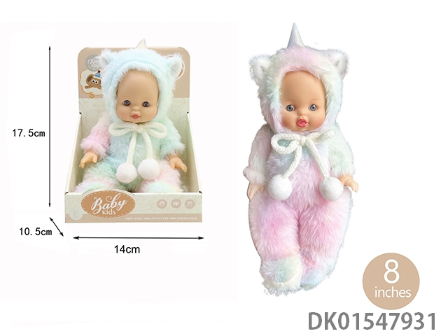 毛绒彩虹马-第16代14寸搪胶哭泣带头发女孩版娃娃带四声音乐cry Babies-Tutti Fritti带流眼泪功能,带吸水奶瓶,带奶嘴 。毛绒带加暖功能。衣服2件套