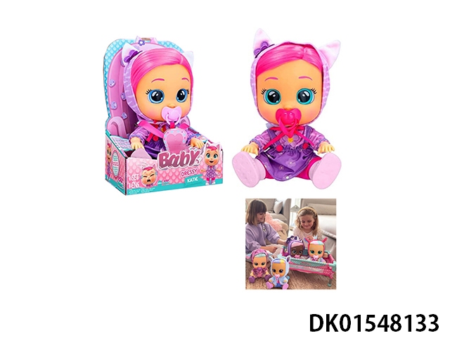 毛绒花猫天使爱爱-第9代14寸搪胶哭泣带头发女孩版娃娃带四声音乐cry Babies-Tutti Fritti带流眼泪功能,带吸水奶瓶,带奶嘴 。毛绒带加暖功能。衣服2件套