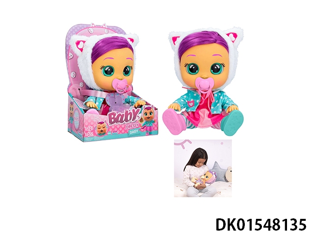 毛绒珊瑚天使-第9代14寸搪胶哭泣带头发女孩版娃娃带四声音乐cry Babies-Tutti Fritti带流眼泪功能,带吸水奶瓶,带奶嘴 。毛绒带加暖功能。衣服2件套