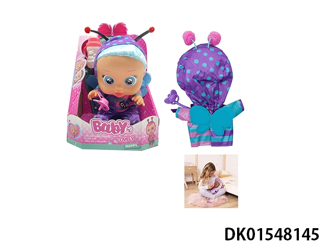 豪华版第14代10寸搪胶带四声音乐cry Babies-Tutti Fritti带流眼泪功能,带吸水奶瓶,带奶嘴 。毛绒带加暖功能。衣服2件套2款混装