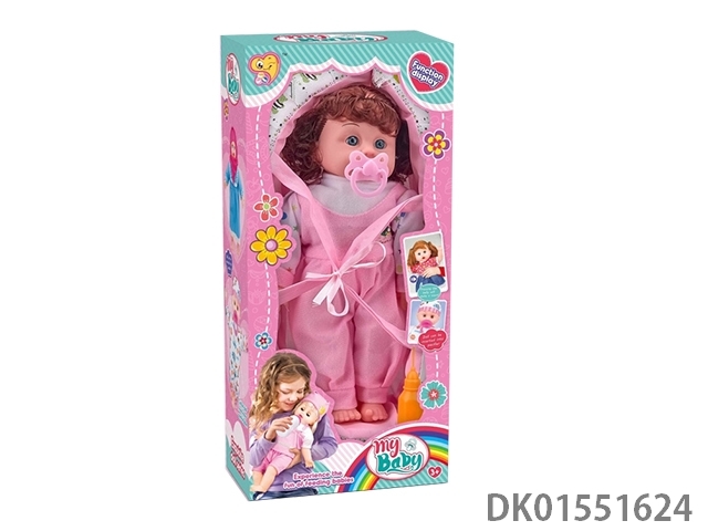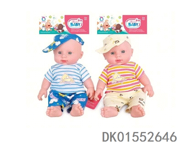 12寸棉身搪胶娃娃哭声奶嘴带提篮,配奶瓶 男娃/女娃混装