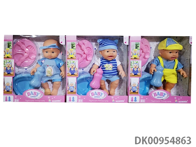 新款12寸搪胶表情娃喝水撒尿配餐盘马桶(6声iC)