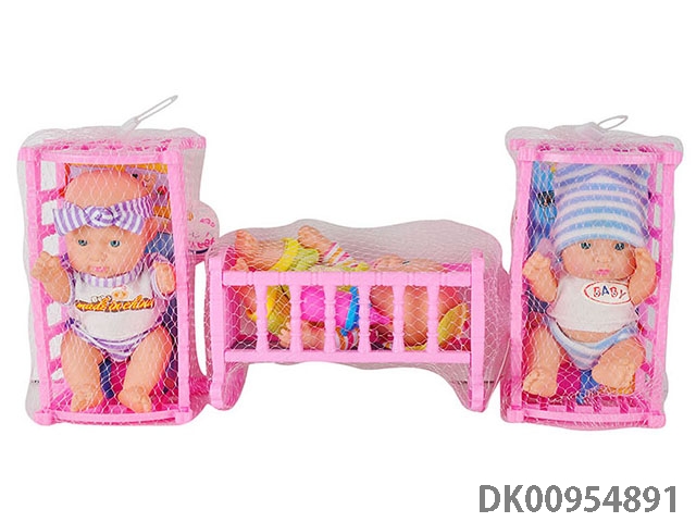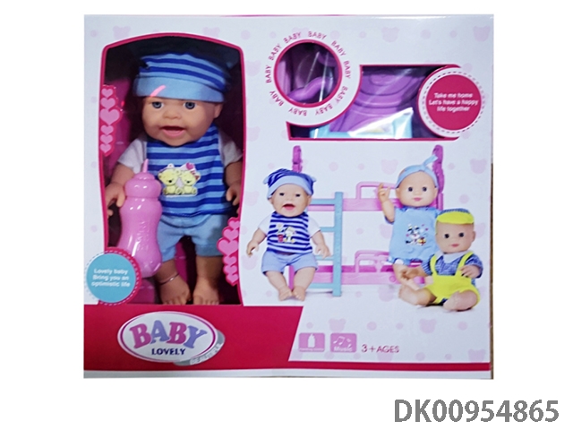 新款12寸搪胶表情娃喝水撒尿配双层睡床,6声IC