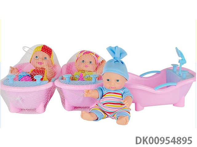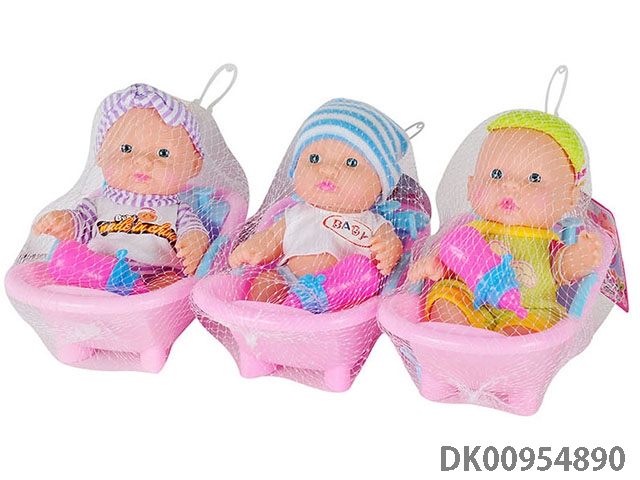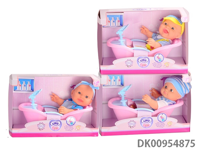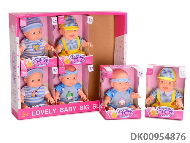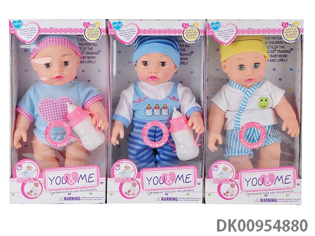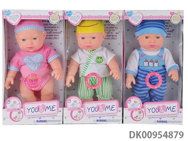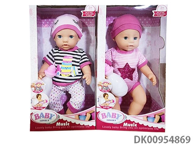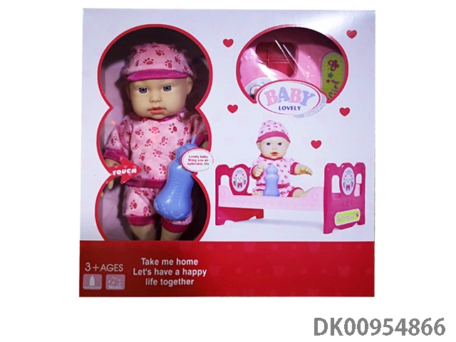 新款12寸搪胶表情娃喝水撒尿带睡床,6声IC