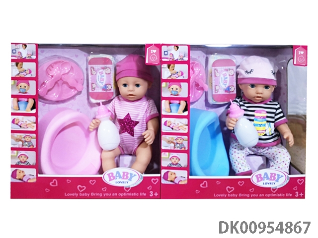 新款16寸喝水拉尿搪胶娃带配件,6声IC