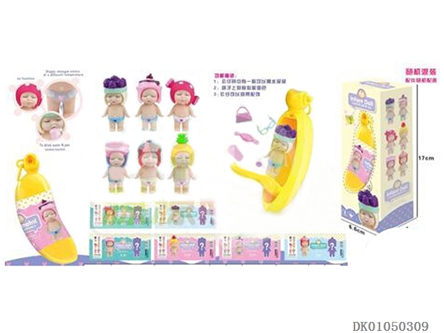 香蕉塑料罐搪胶可爱食物睡娃公仔带奶瓶带包带眼镜6款混装