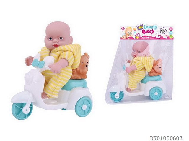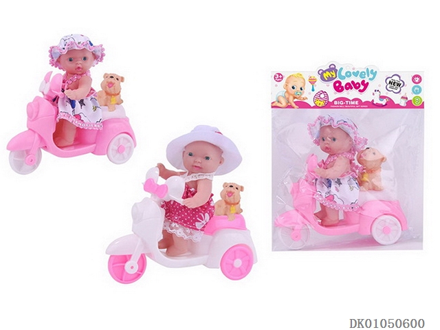 6.5寸3D眼搪胶小睡娃带摩托车小狗一袋一只