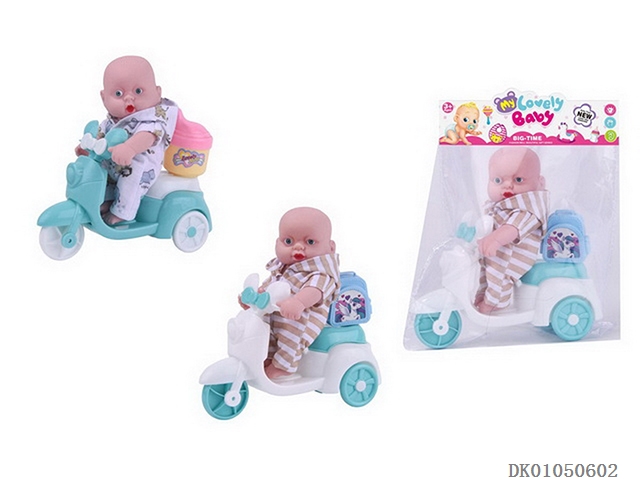 6.5寸3D眼搪胶小睡娃带摩托车小书包一袋一只2款混装