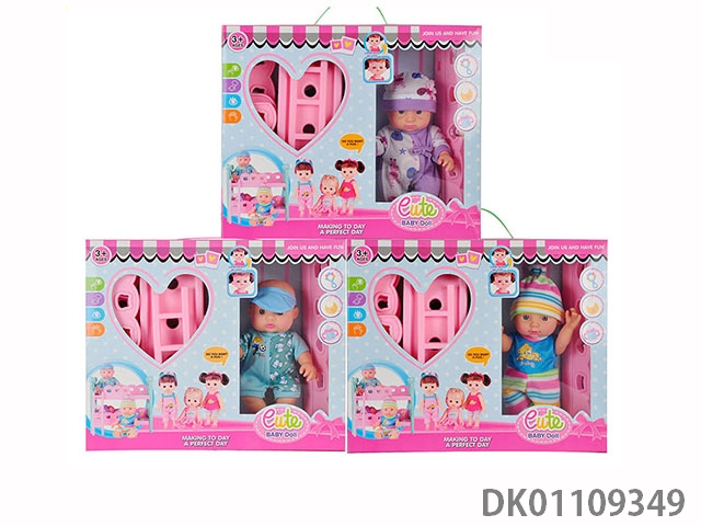 新款12寸搪胶表情娃喝水撒尿配双层睡床,6声IC