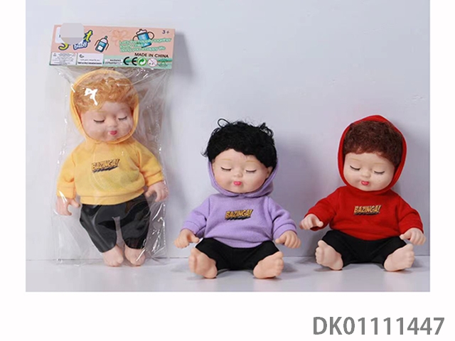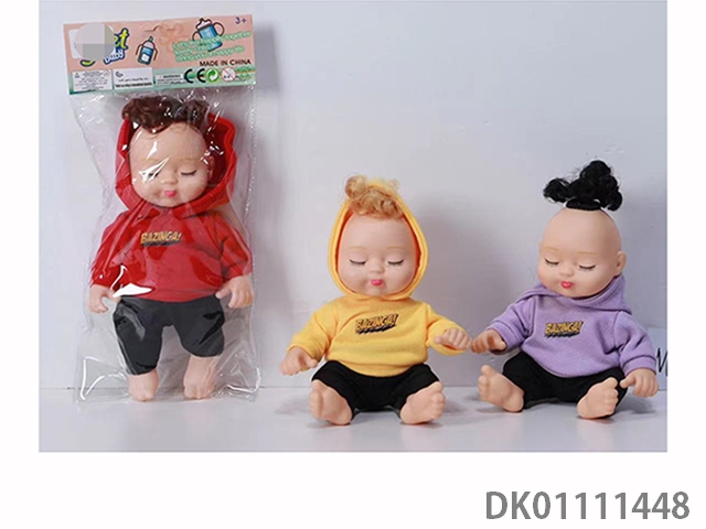 新款12寸搪胶表情娃喝水撒尿带睡床,6声IC