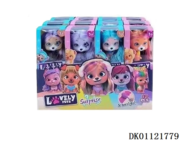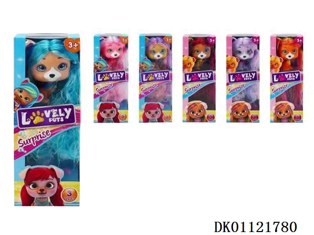I LOVE VIP PETS 21厘米曲发直发5寸搪胶VIP宠物俱乐部配梳子,发夹。染色膏,橡皮圈5条 6款混装【所有宠物配件装在盲盒里】