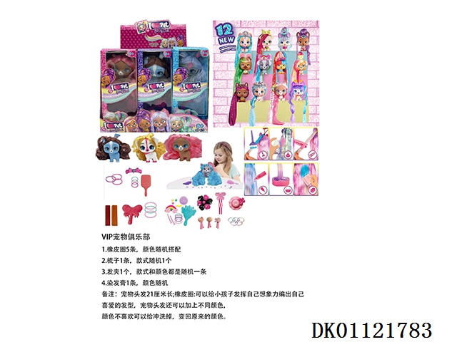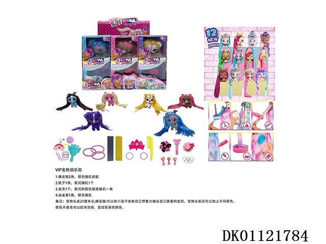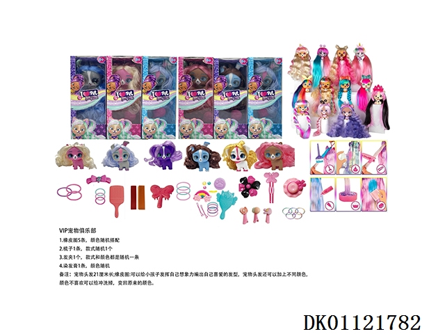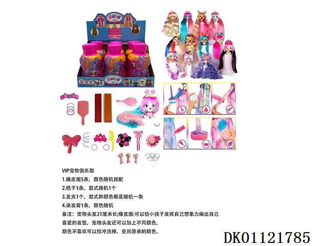 I LOVE VIP PETS 21厘米曲发直发5寸搪胶VIP宠物俱乐部配梳子,发夹。染色膏,橡皮圈5条 6款混装9PC【所有宠物配件装在盲盒里】