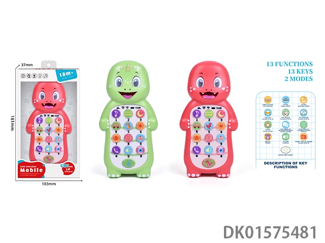 英文益智灯光音乐手机(恐龙)3*AAA儿童多功能音乐手机益智仿真电话玩具