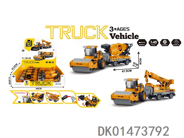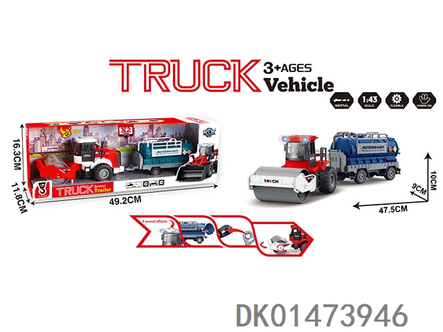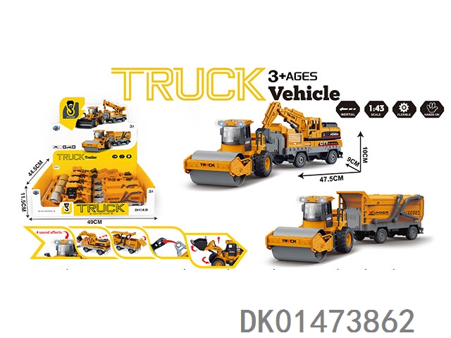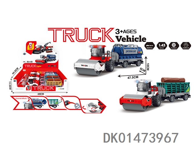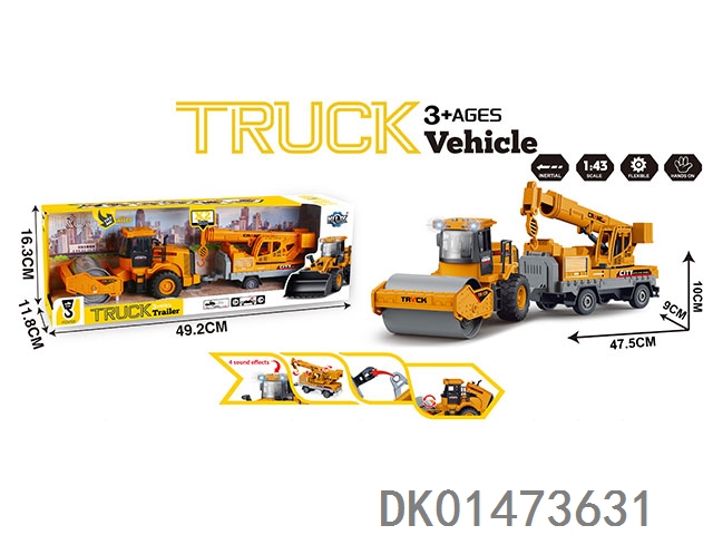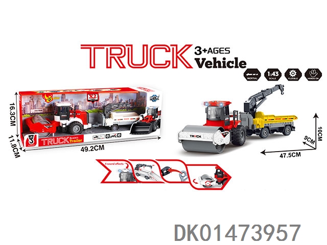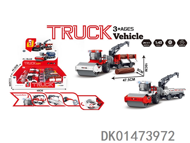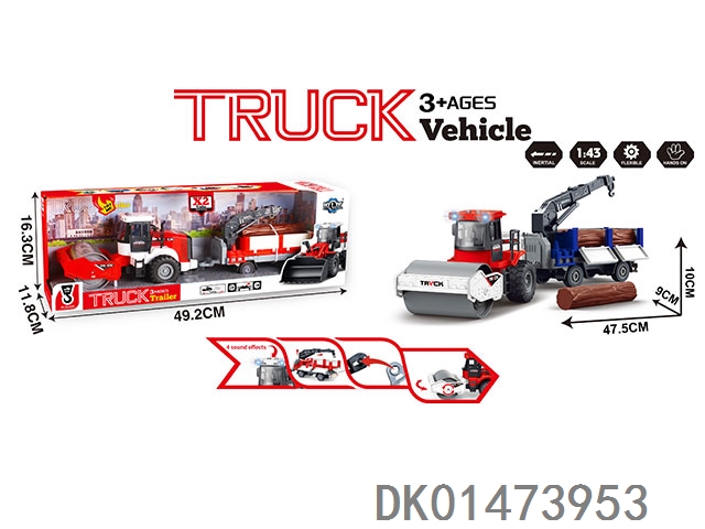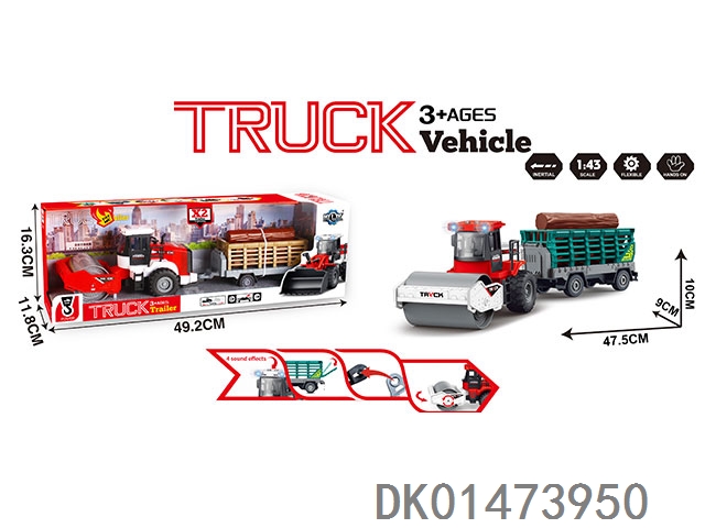 惯性工程压路拖车带灯光声音(包电3粒AG13)4PCS/BOX