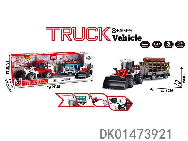 惯性工程推土拖车带灯光声音(包电3粒AG13)4PCS/BOX