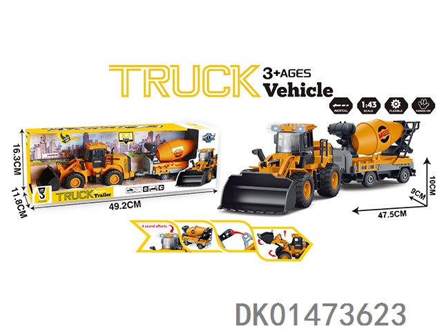 惯性工程压路拖车带灯光声音(包电3粒AG13)