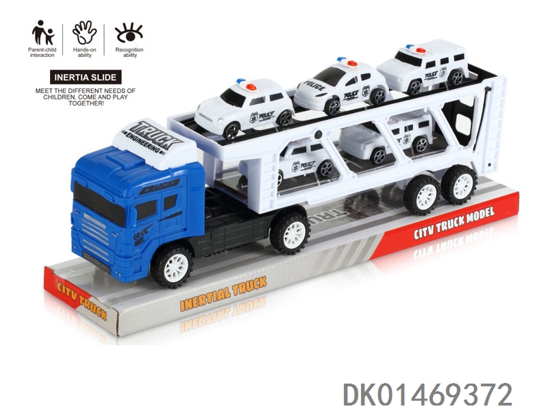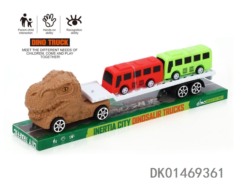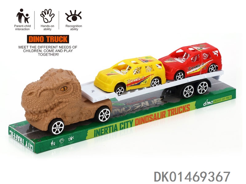 惯性恐龙拖头车带2辆滑行大赛车