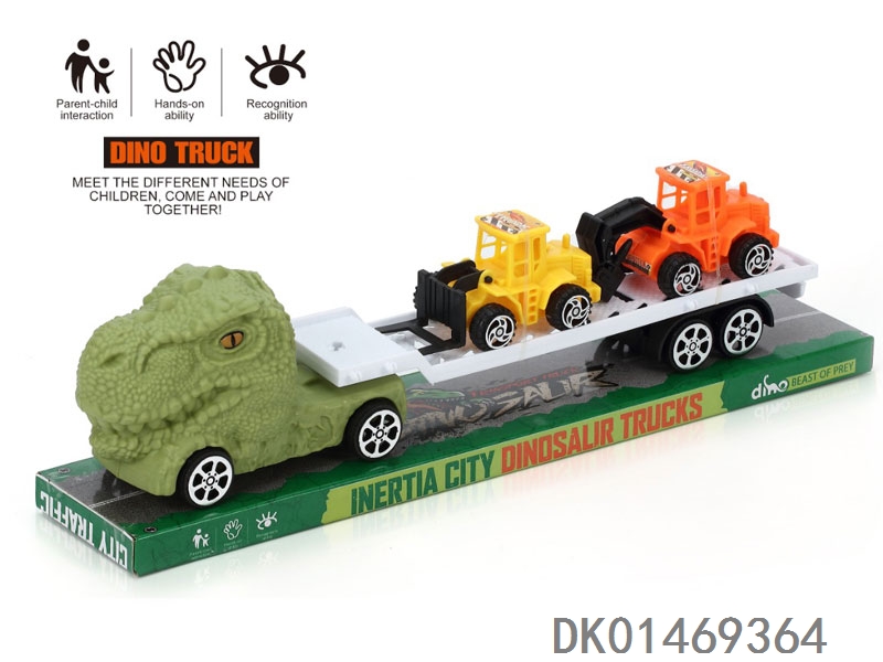 惯性恐龙拖头车带2辆滑行工程车