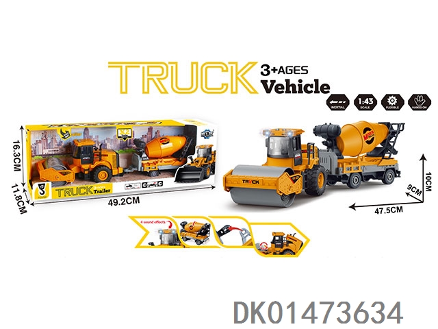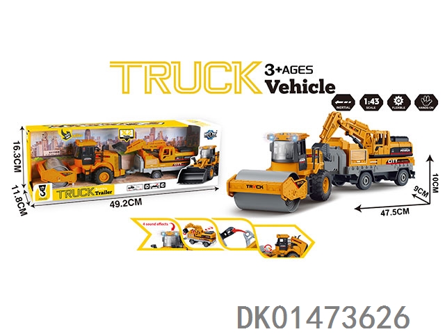惯性工程压路拖车带灯光声音(包电3粒AG13)