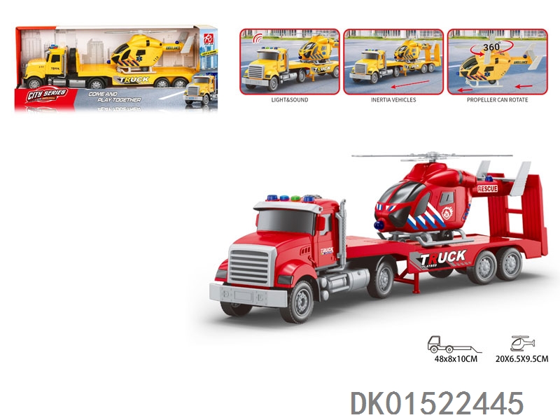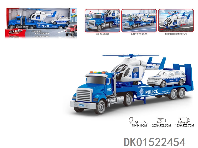1:18美国方型车头-声音灯光惯性警车平板拖直升机/警车