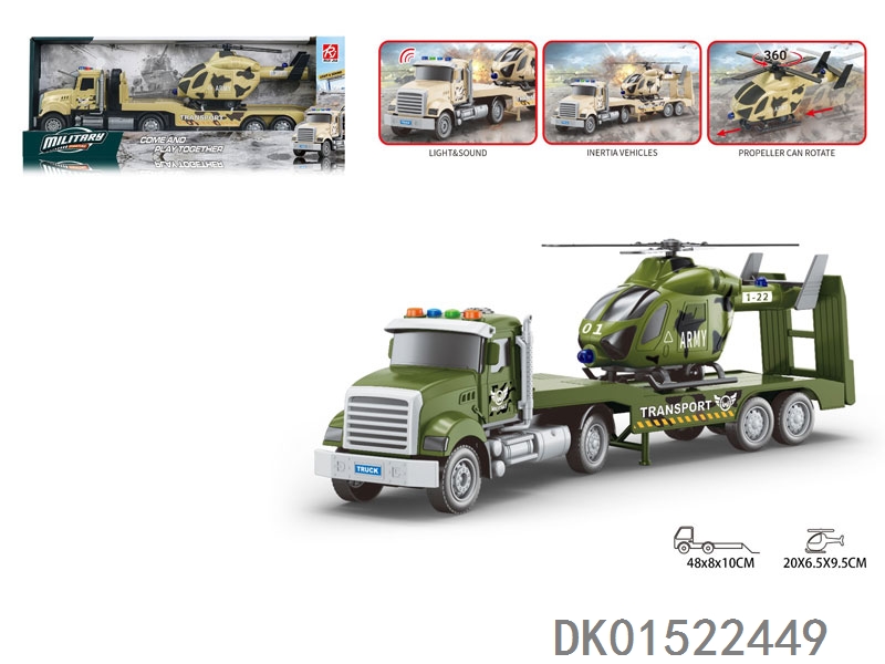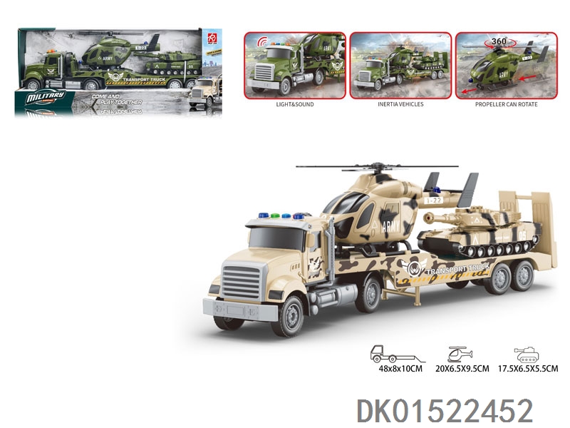 1:18美国方型车头-声音灯光惯性军事平板拖直升机/坦克