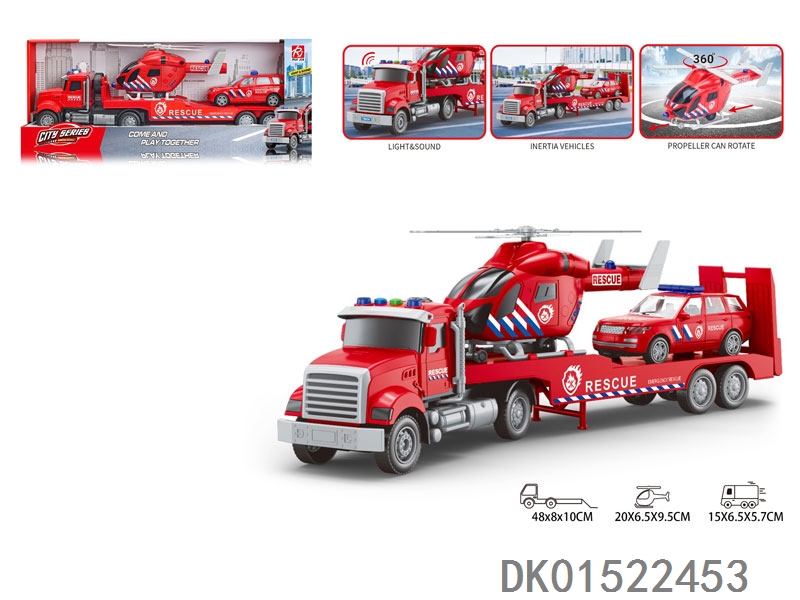 1:18美国方型车头-声音灯光惯性消防平板拖直升机/警车