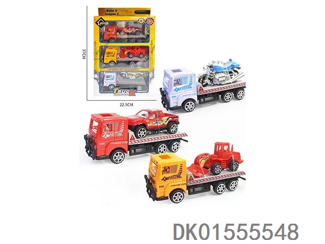 惯性美式拖头车带2辆跑车+3辆金属车