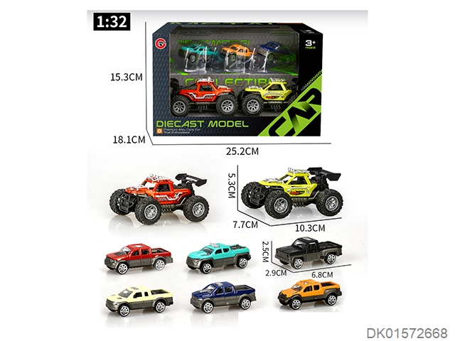 1:32合金惯性单座骨架越野车2只装+3只滑行车子