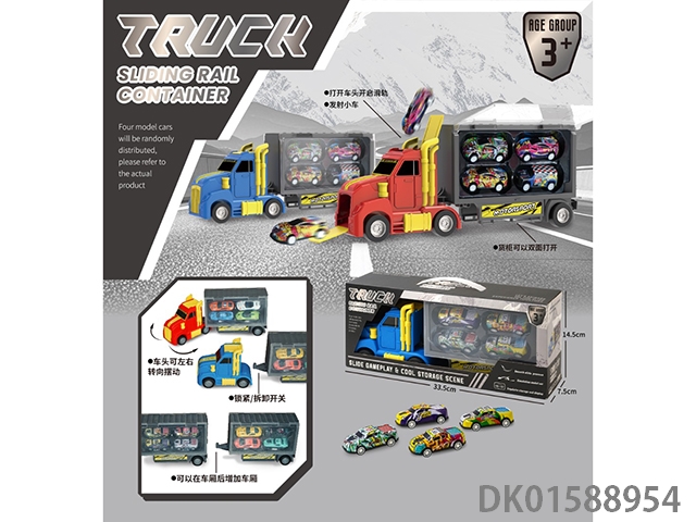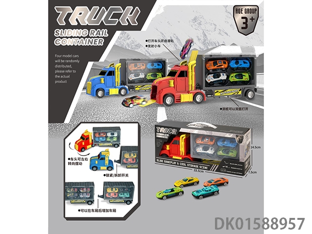 美式拖头卡车滑轨收纳货柜车(车头可转向可拼接多个车厢,搭配4合金车)