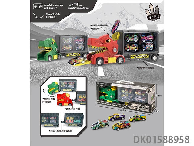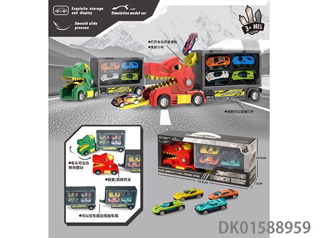 恐龙拖头卡车滑轨收纳货柜车(车头可转向可拼接多个车厢,搭配4回力铁皮车)