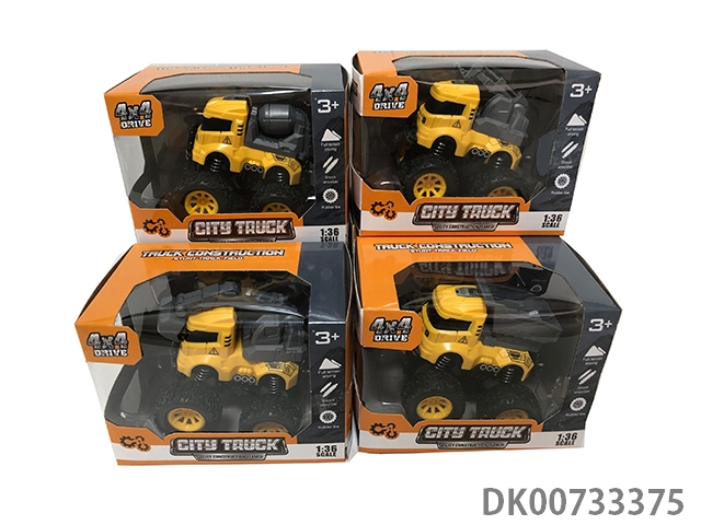 18CM惯性拖头工程车,3色-红/黄/白16pcs