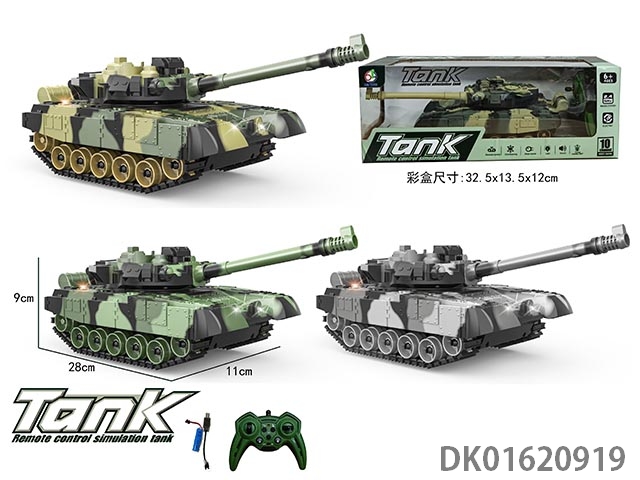 2.4G 10通遥控履带式坦克带灯光音乐包电,3色混装